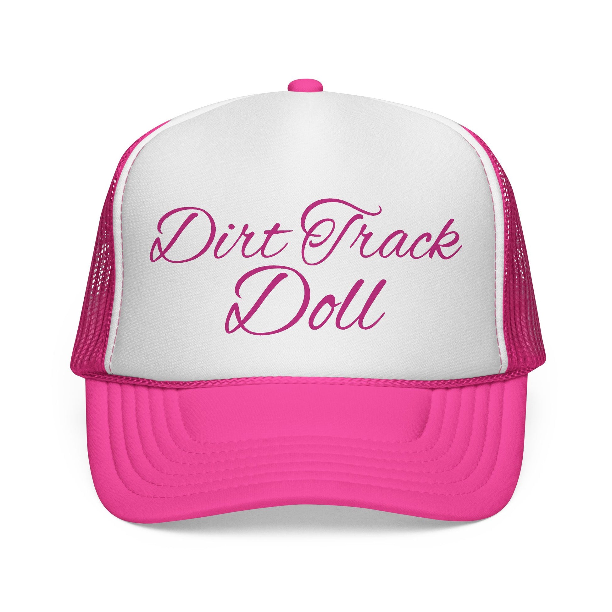 Dirt Track Doll Trucker Hat. For the ones who live the dirt track life as much as anyone in the pits. Classic mesh snapback with a vintage-inspired design that feels right at home under the lights on a Saturday night.