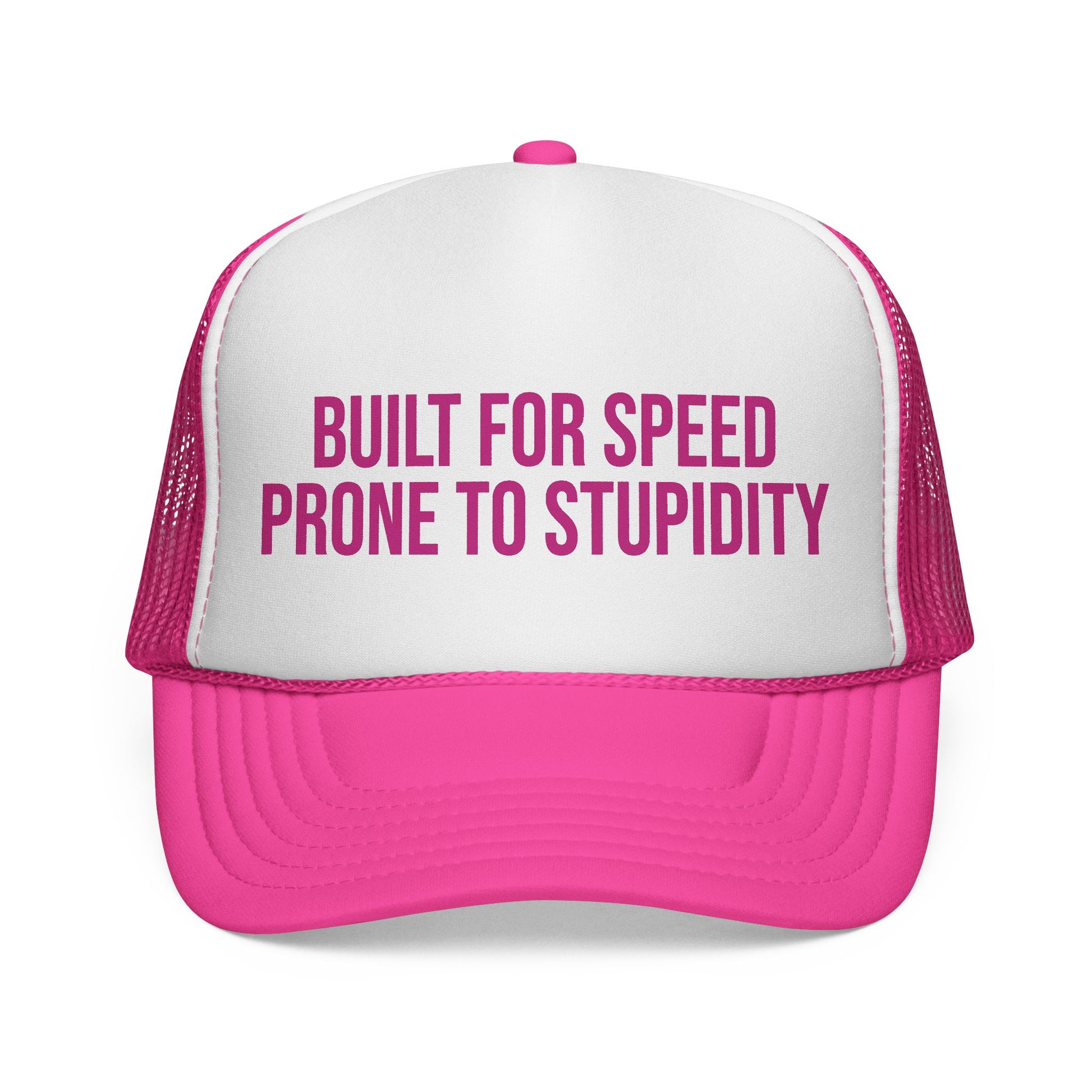 No filters, no apologies. The Built For Speed Prone To Stupidity trucker hat says exactly what everyone’s thinking at the track or the bar. Classic mesh-back style with a bold statement for those who live fast, laugh loud, and don’t mind a little trouble along the way.