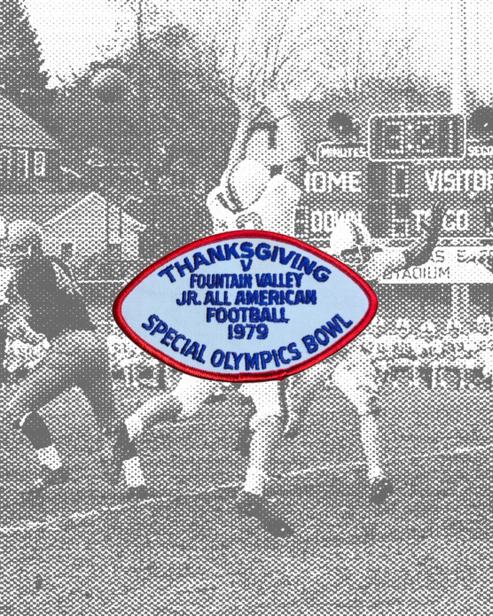 A heartfelt piece of late-’70s sports history. This patch commemorates the 1979 Thanksgiving Special Olympics Bowl, celebrating athletes, community, and the spirit of competition. With its retro typography, warm fall color palette, and classic embroidered style, it’s a meaningful collectible for vintage sports enthusiasts and anyone who values the legacy of the Special Olympics. Perfect for display, sewing onto a jacket, or adding to a patch collection with purpose and pride.