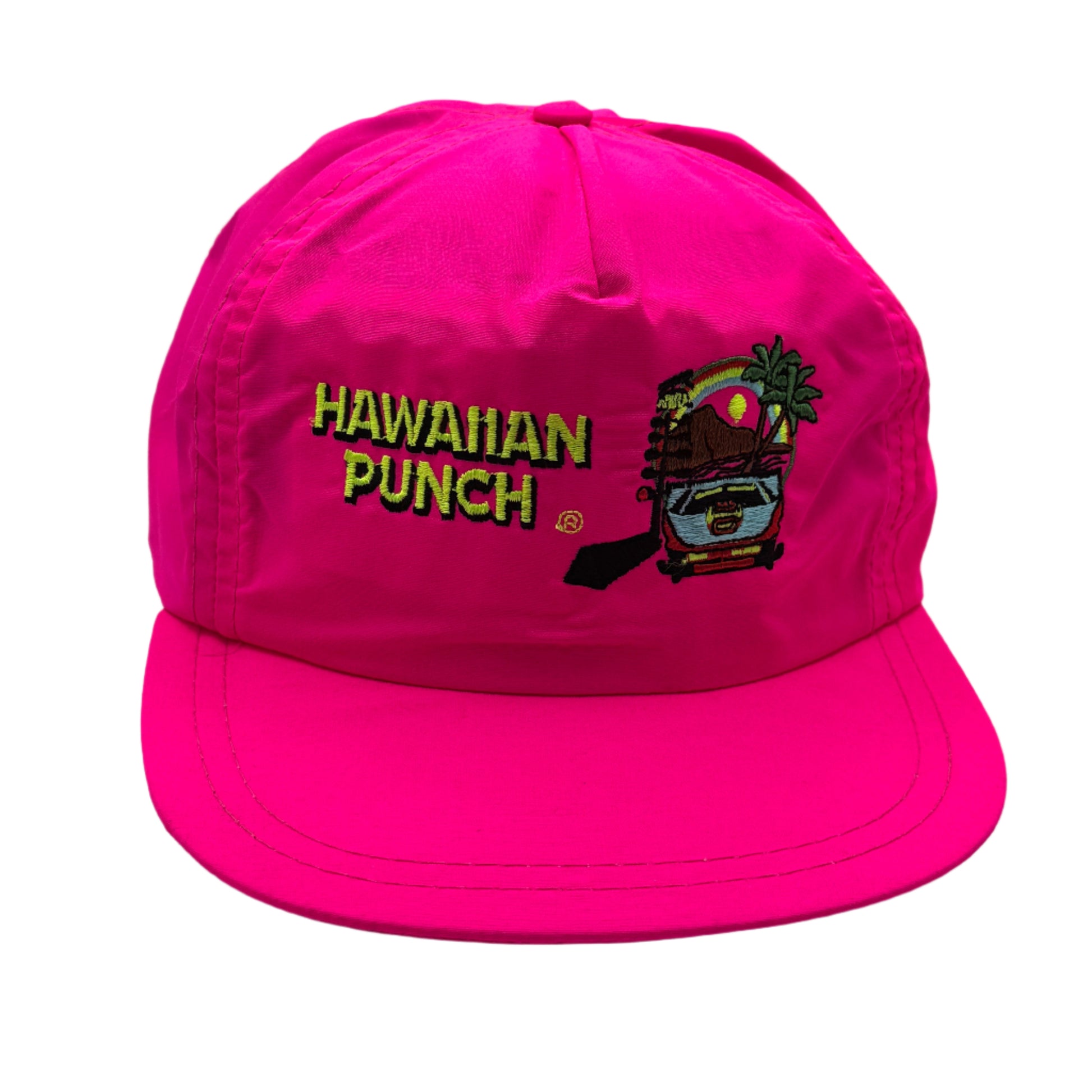 Straight from the pit lane of the soda-fueled speed wars! This New Old Stock Hawaiian Punch Funny Car Racing slideback hat is serving tropical flavor with a nitro kick. Bright graphics, classic slideback fit, and zero wear — just pure '90s dragstrip energy.
