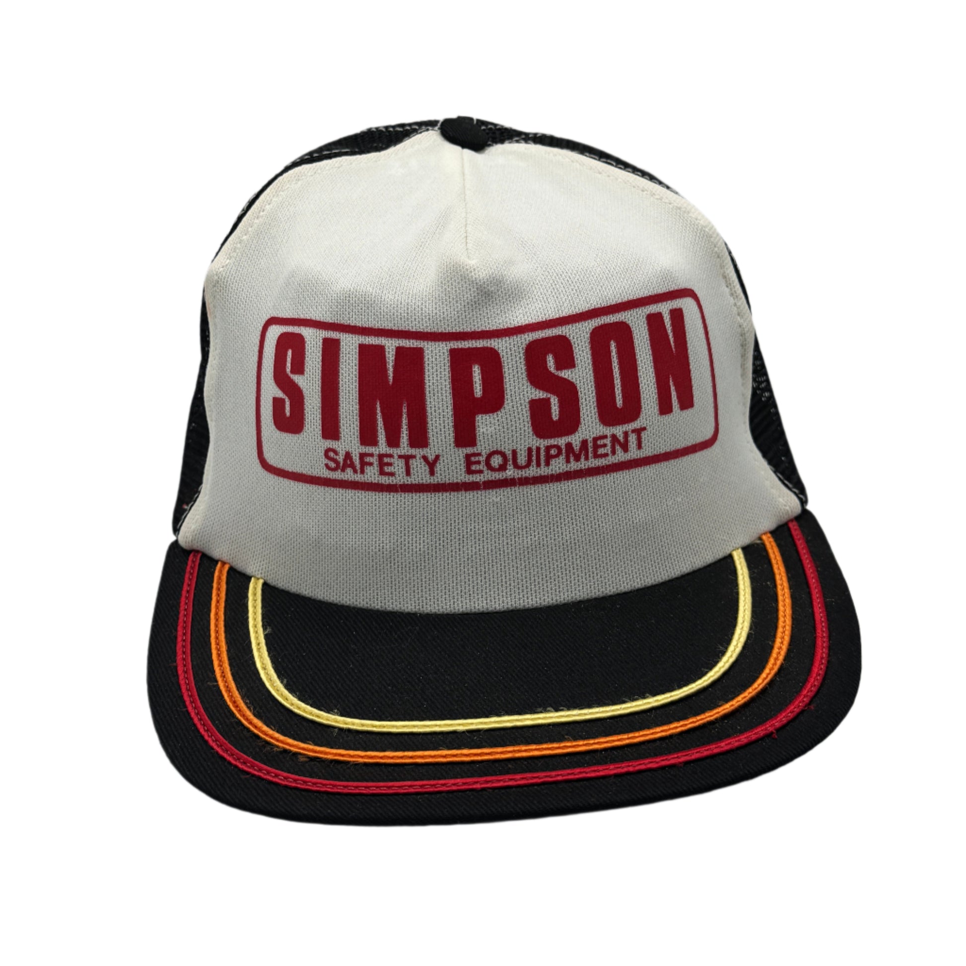 Unworn original featuring the classic Simpson logo, a staple in racing safety gear. Mesh-back trucker style with a structured crown and adjustable snapback. A rare vintage piece from one of motorsport’s most trusted names.